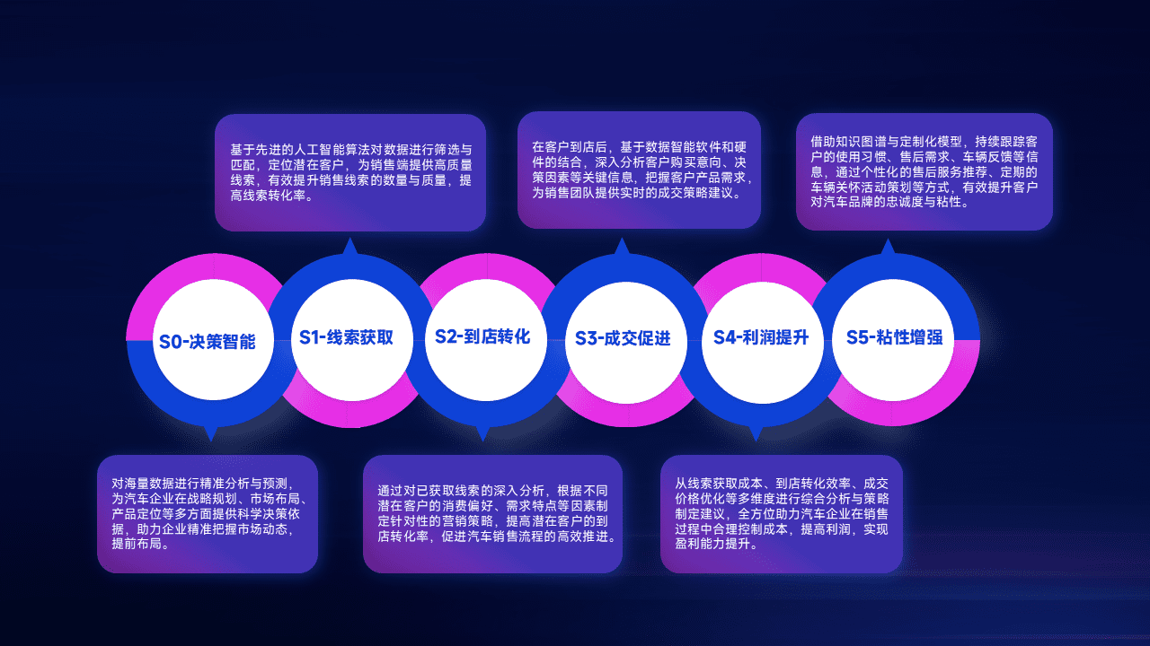 通过拓宽潜在客户来源、、、、优化线索分配并提高到店转化率,,以增强销售效率。。同时,,利用线索数据不断优化分析模型,,有效提升转化率,,,扩大营销影响力。。。。